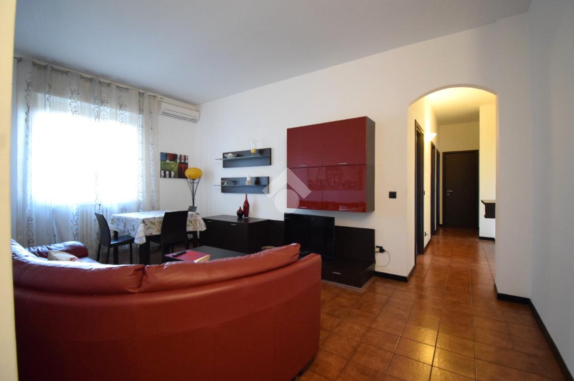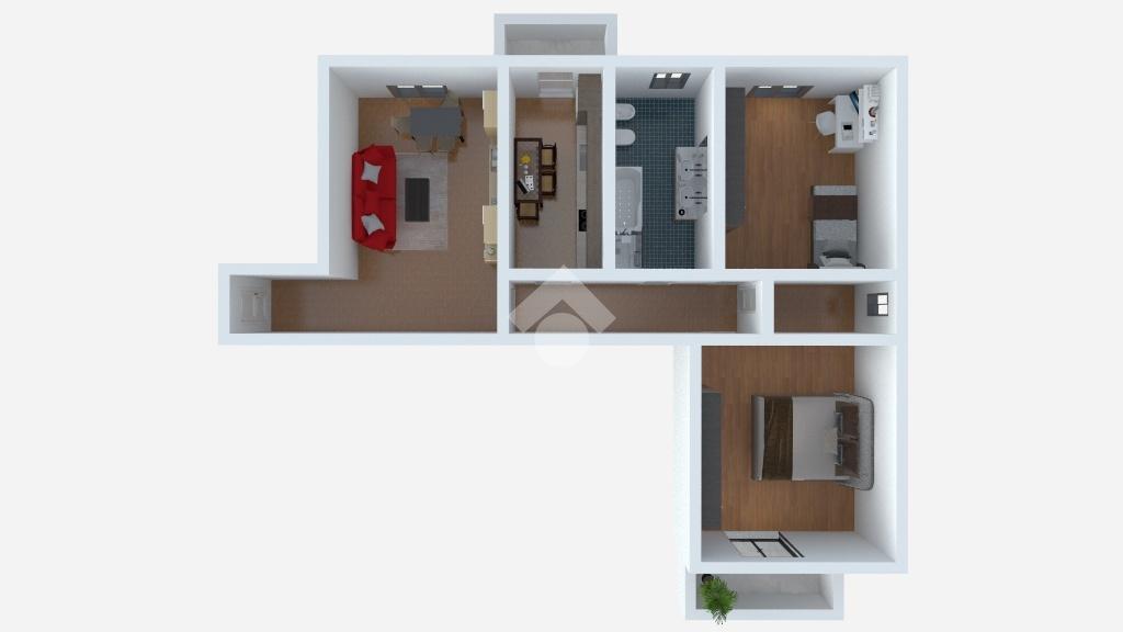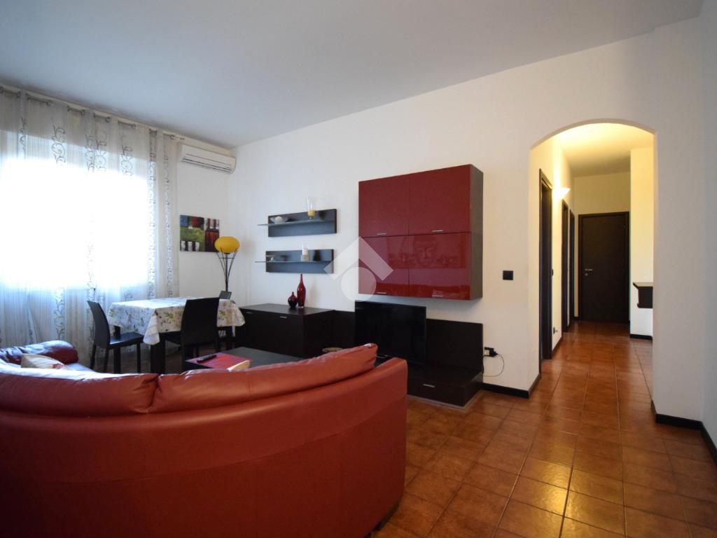 Entrando troviamo un ingresso che accompagna ad un ampio soggiorno. Un disimpegno, con ripostiglio, conduce invece alla cucina abitabile, con comodo balcone, e alla zona notte.