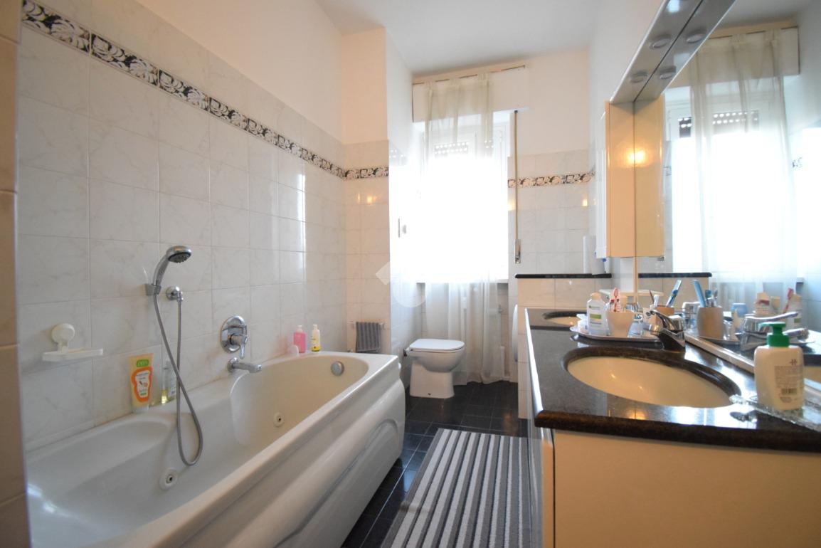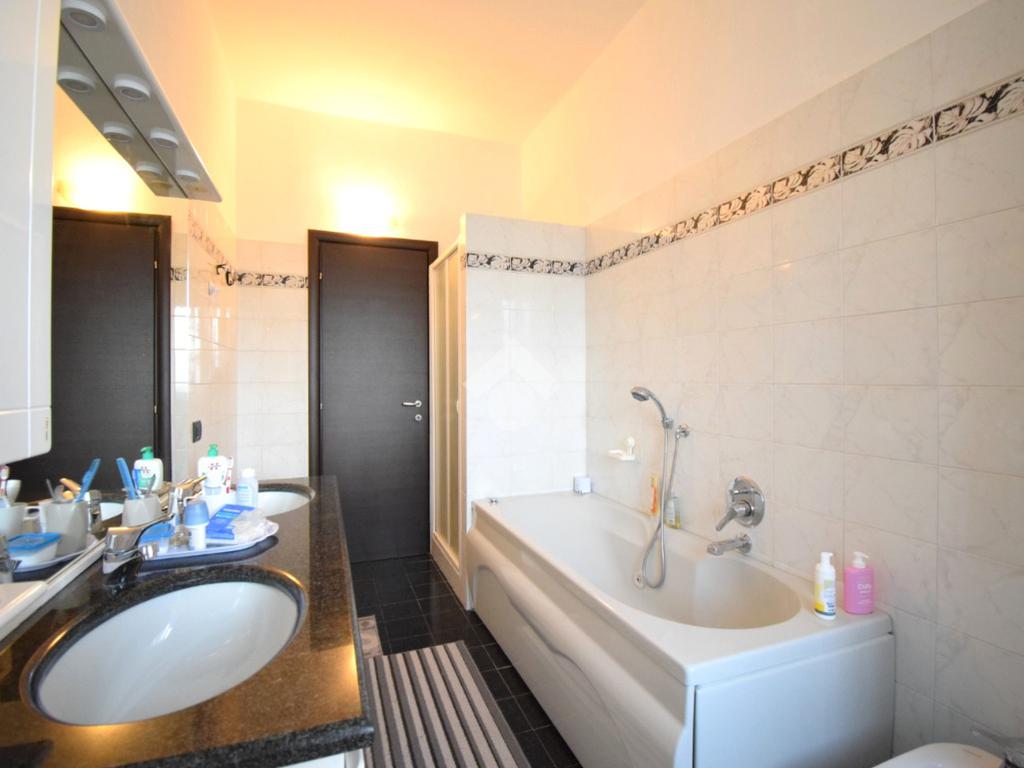 Bagno finestrato che ha sia la vasca che il box doccia.