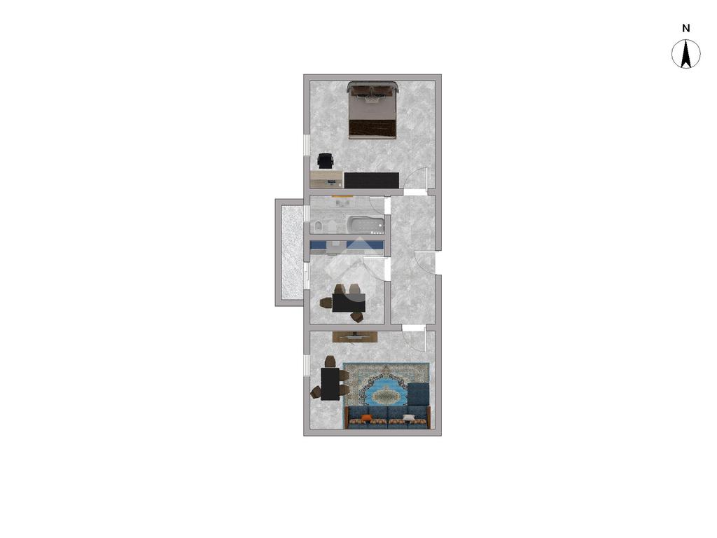 Entrando troviamo un disimpegno che divide gli ambienti. Luminoso soggiorno, cucina abitabile con comodo balcone, spaziosa camera matrimoniale e bagno finestrato con vasca.