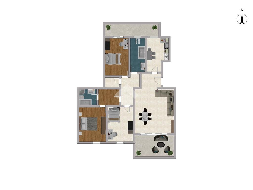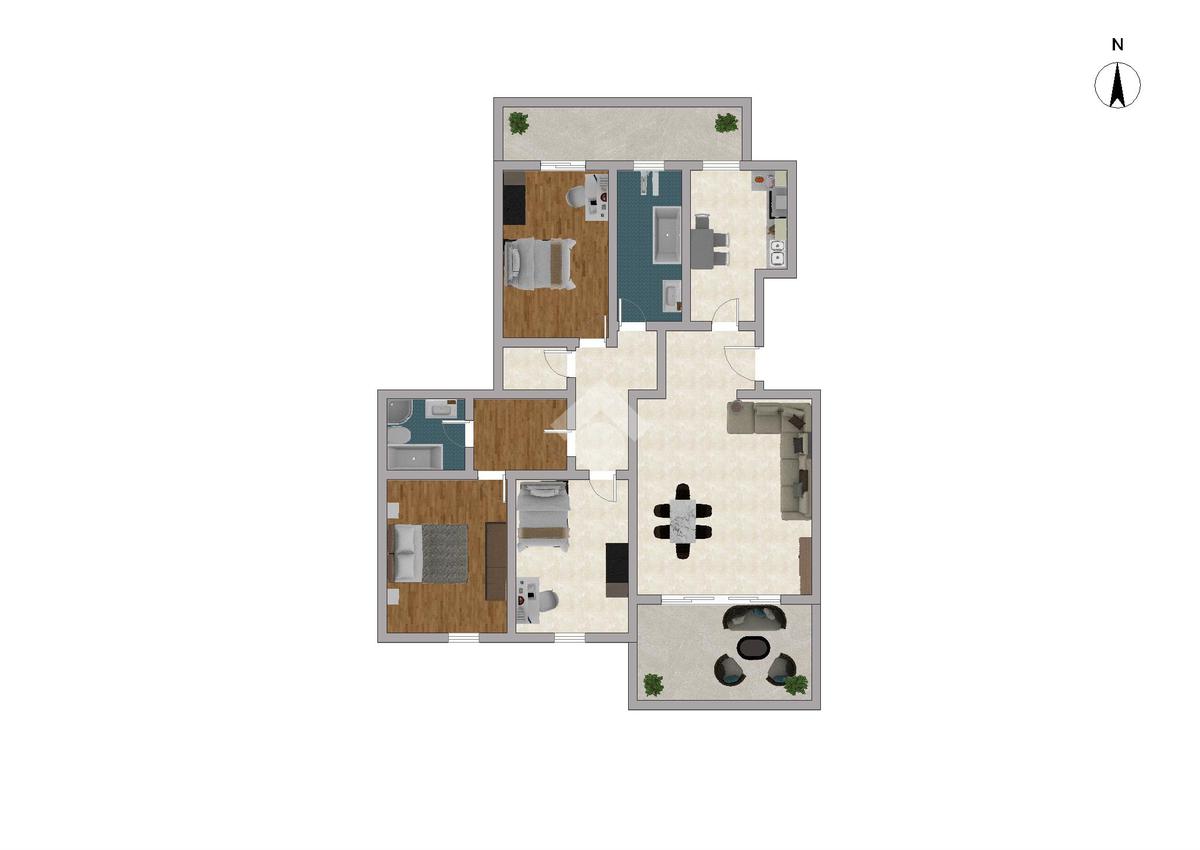 L'accesso alla camera matrimoniale invece, avviene tramite disimpegno privato con bagno cieco di servizio, ideale per garantire comfort e privacy.