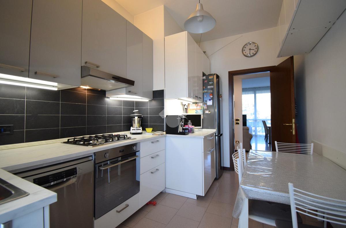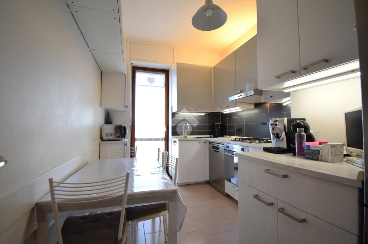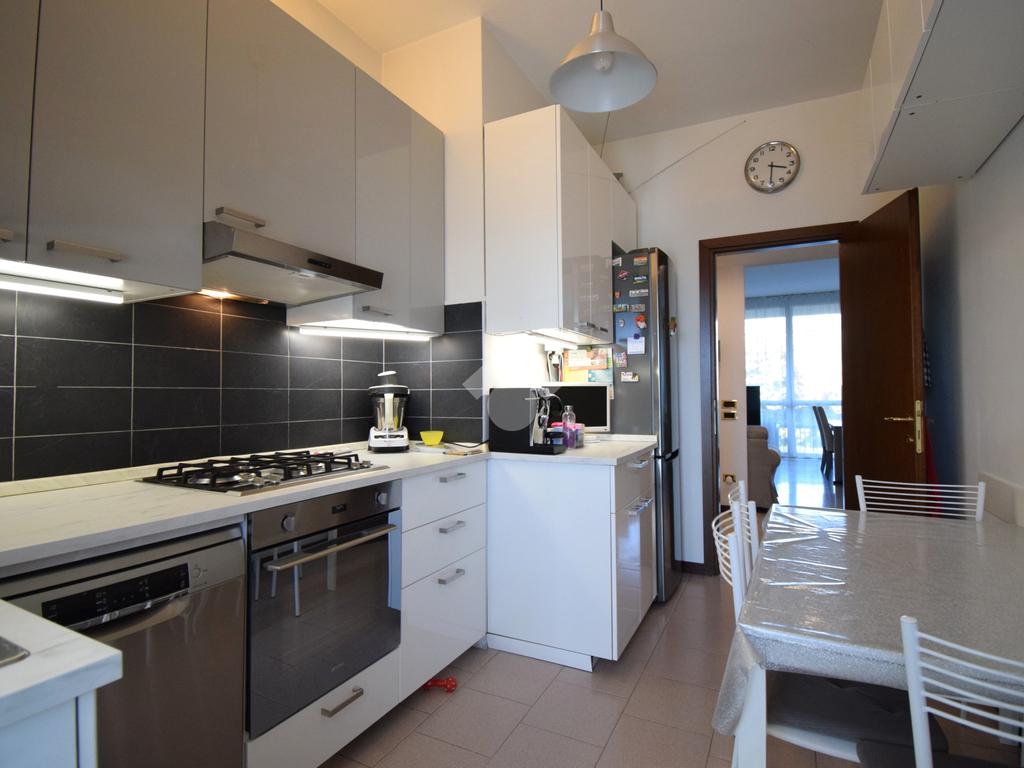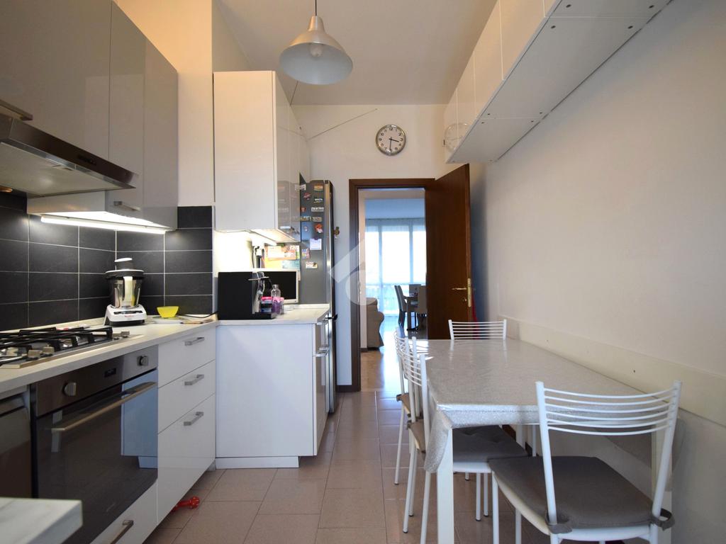 Entrando troviamo un ingresso che accompagna ad un ampio soggiorno con accesso diretto al terrazzo, perfetto per momenti di relax all'aperto. La cucina è separata e ha sfogo su un'ampia balconata.