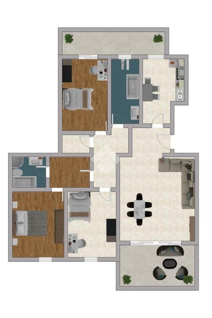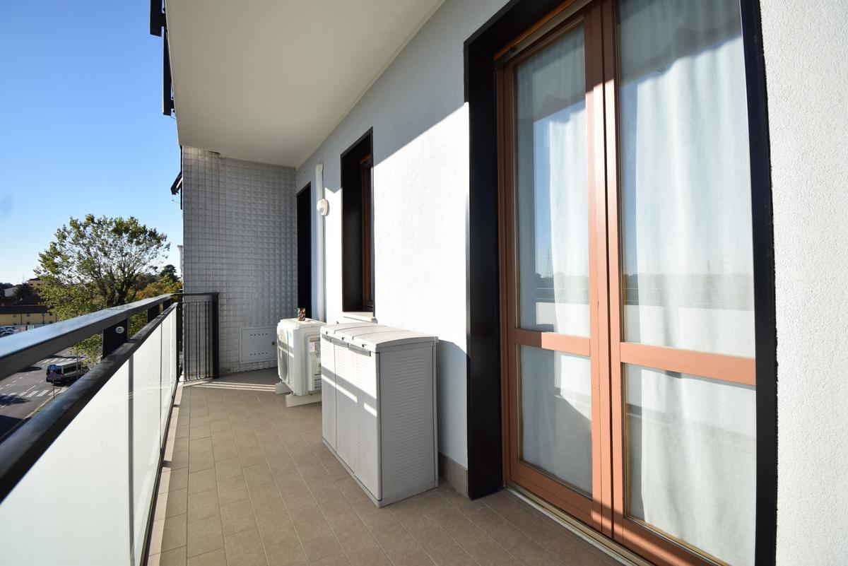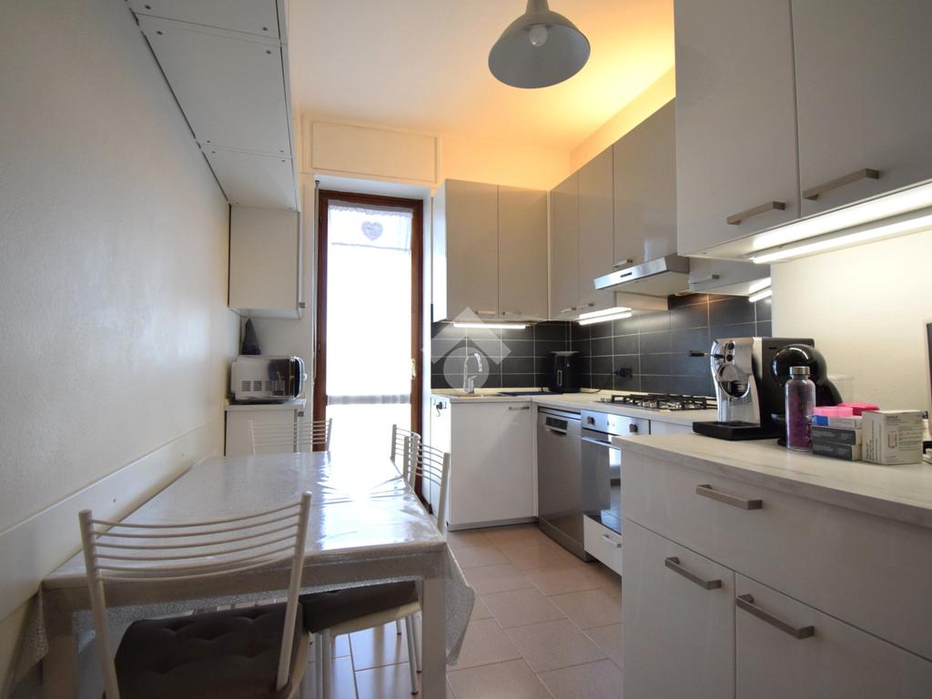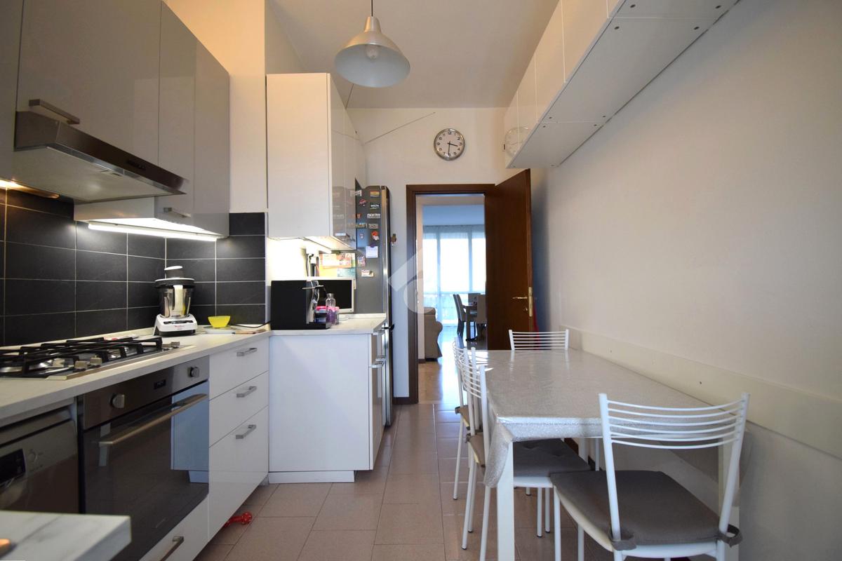 Entrando troviamo un ingresso che accompagna ad un ampio soggiorno con accesso diretto al terrazzo, perfetto per momenti di relax all'aperto. La cucina è separata e ha sfogo su un'ampia balconata.