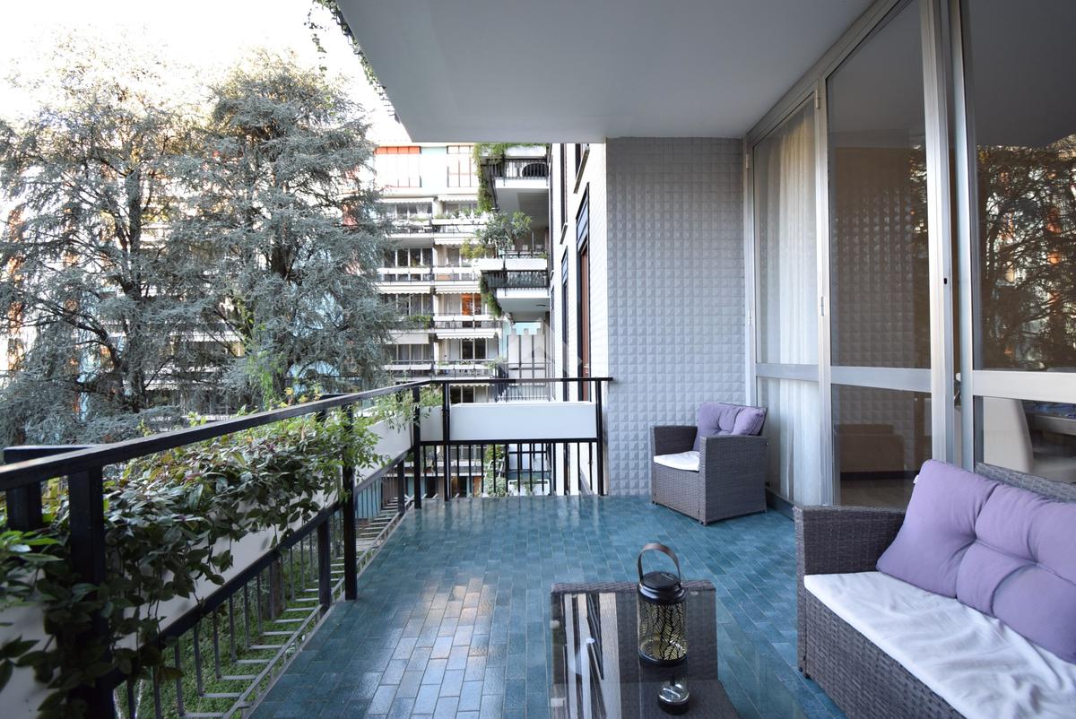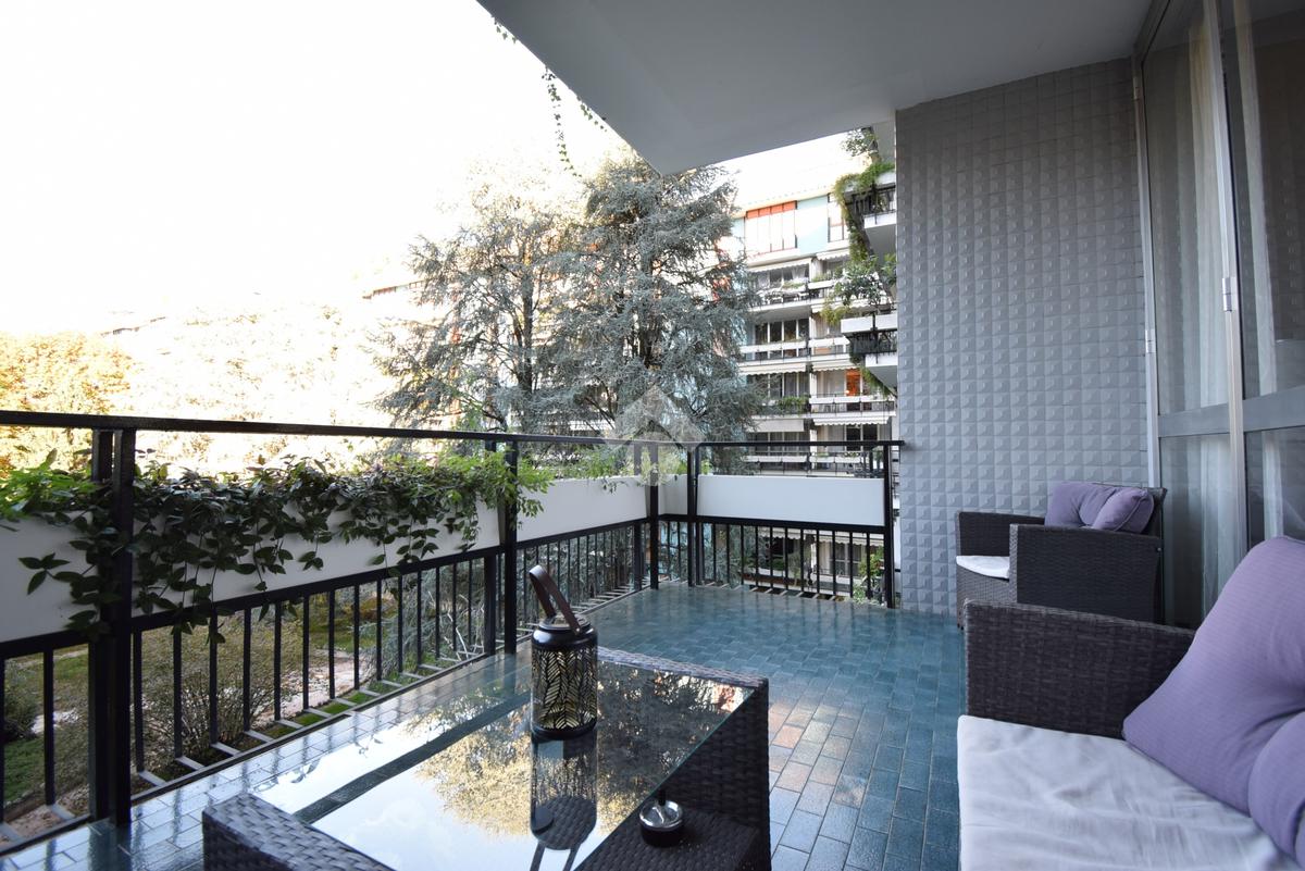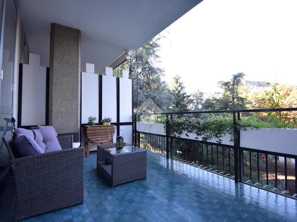 L'appartamento, posto al terzo piano, è in una delle cinque residenze storiche del quartiere e gode di una piacevole vista sul giardino interno con i suoi terrazzi fioriti e piante di vario tipo. Servizio di portineria full time.
