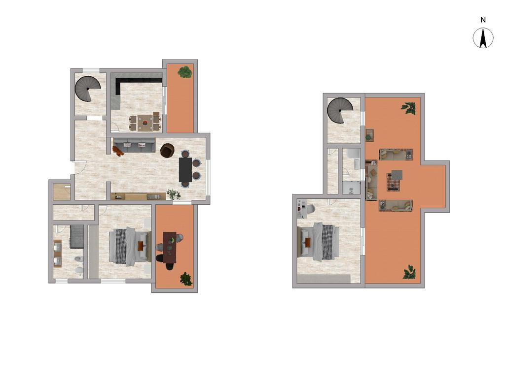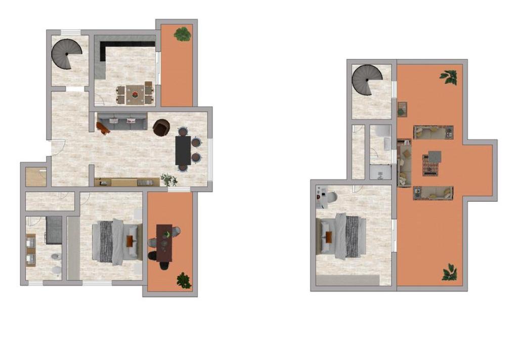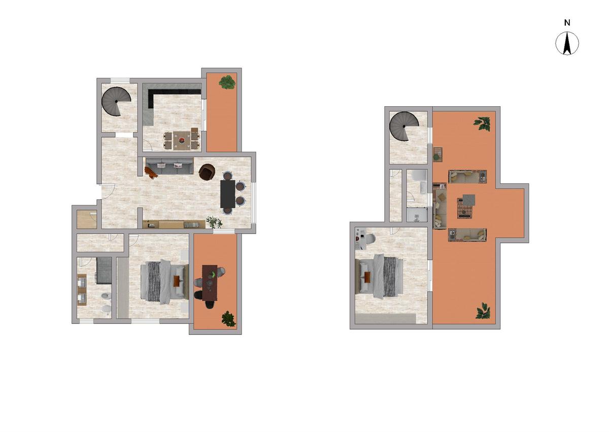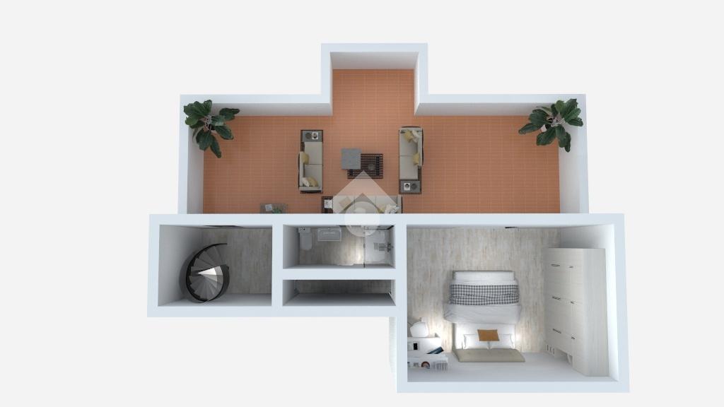 Tramite scala a chiocciola, è possibile accedere al piano superiore in cui è presente un secondo servizio finestrato ed un ulteriore camera matrimoniale con accesso diretto al terrazzo, perfetto per momenti di relax all'aperto in totale privacy.