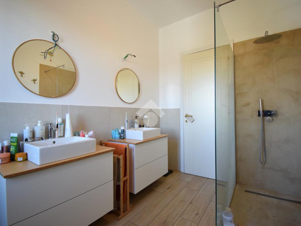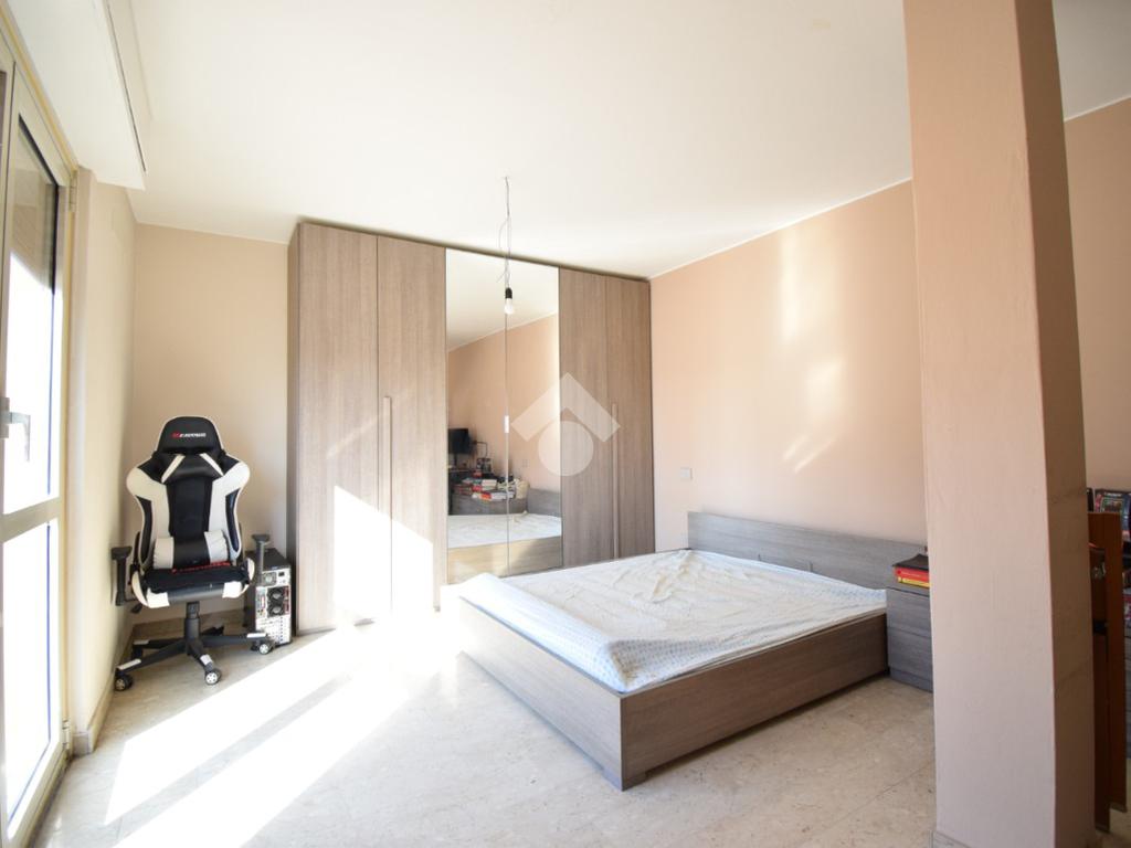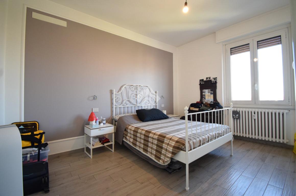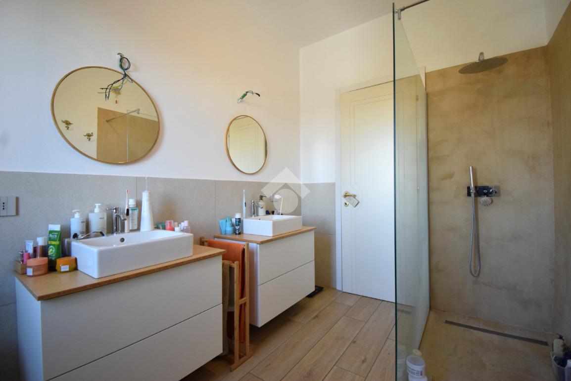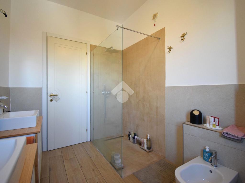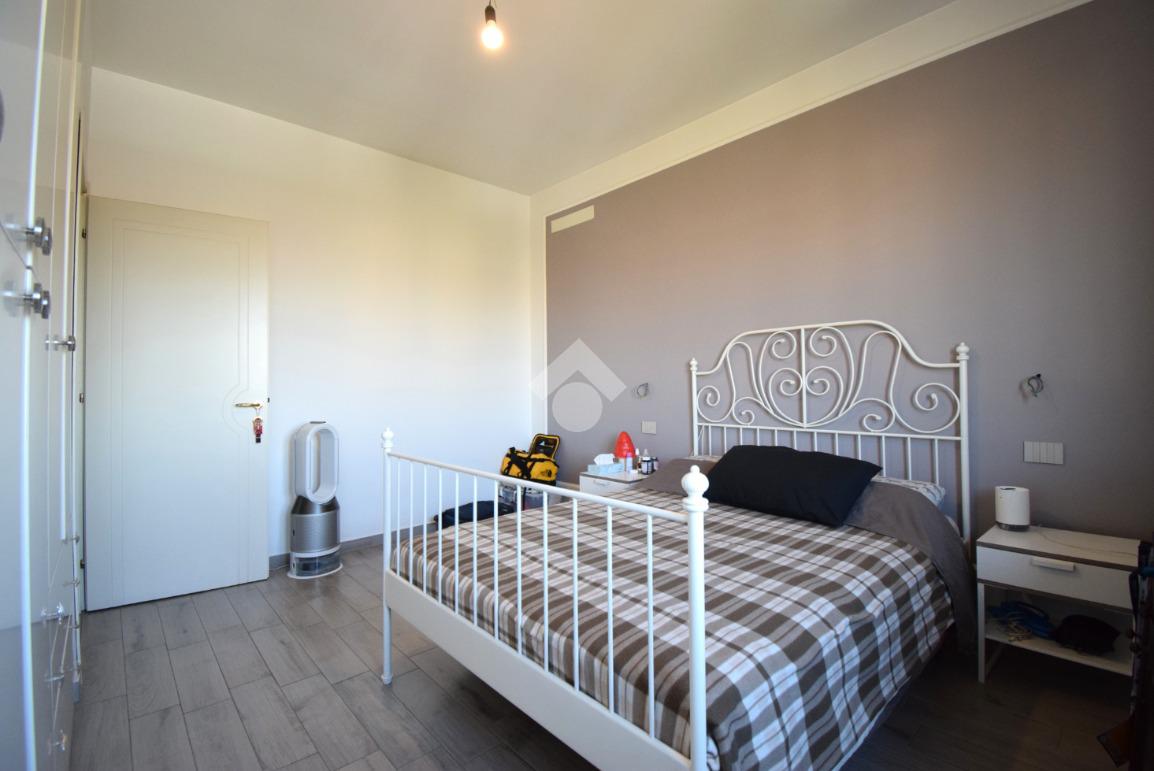 Un disimpegno conduce alla camera matrimoniale e al bagno finestrato con doccia.