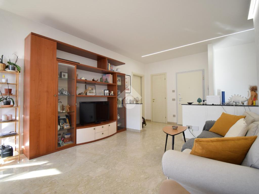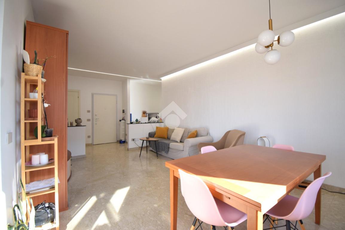 Entrando troviamo un ingresso, con ripostiglio, che accompagna all'ampio e luminoso soggiorno con sfogo su un primo terrazzo. La cucina è abitabile e ha un comodo balcone.