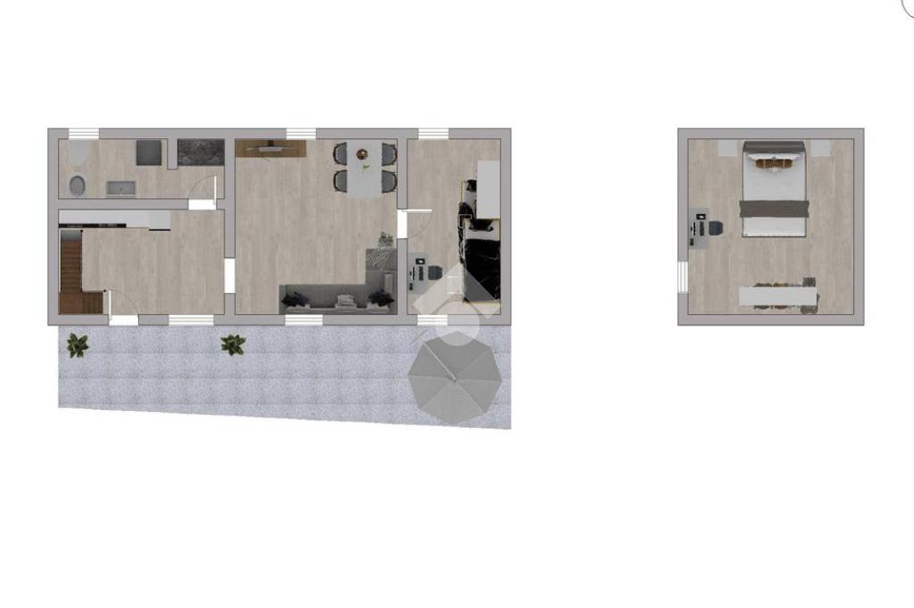 Ad arricchire la proprietà, un cortile privato adiacente all'ingresso dell'abitazione, ideale per momenti di relax all'aperto.